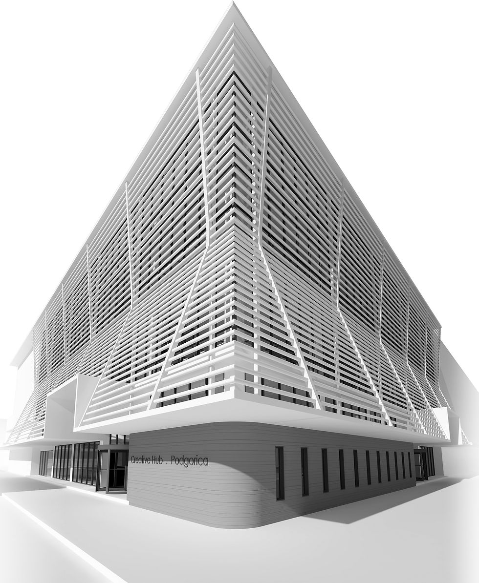 Новый облик здания формируют фасадные К-образные консоли, служащие несущими элементами карниза и навеса. Горизонтальные трубки, закреплённые на консолях, образуют внешнюю оболочку здания. Для проникновения естественного света во внутренни е помещения здания, фасад внутреннего двора выполнен полностью остекленным, а южный фасад имеет дополнительные проёмы.